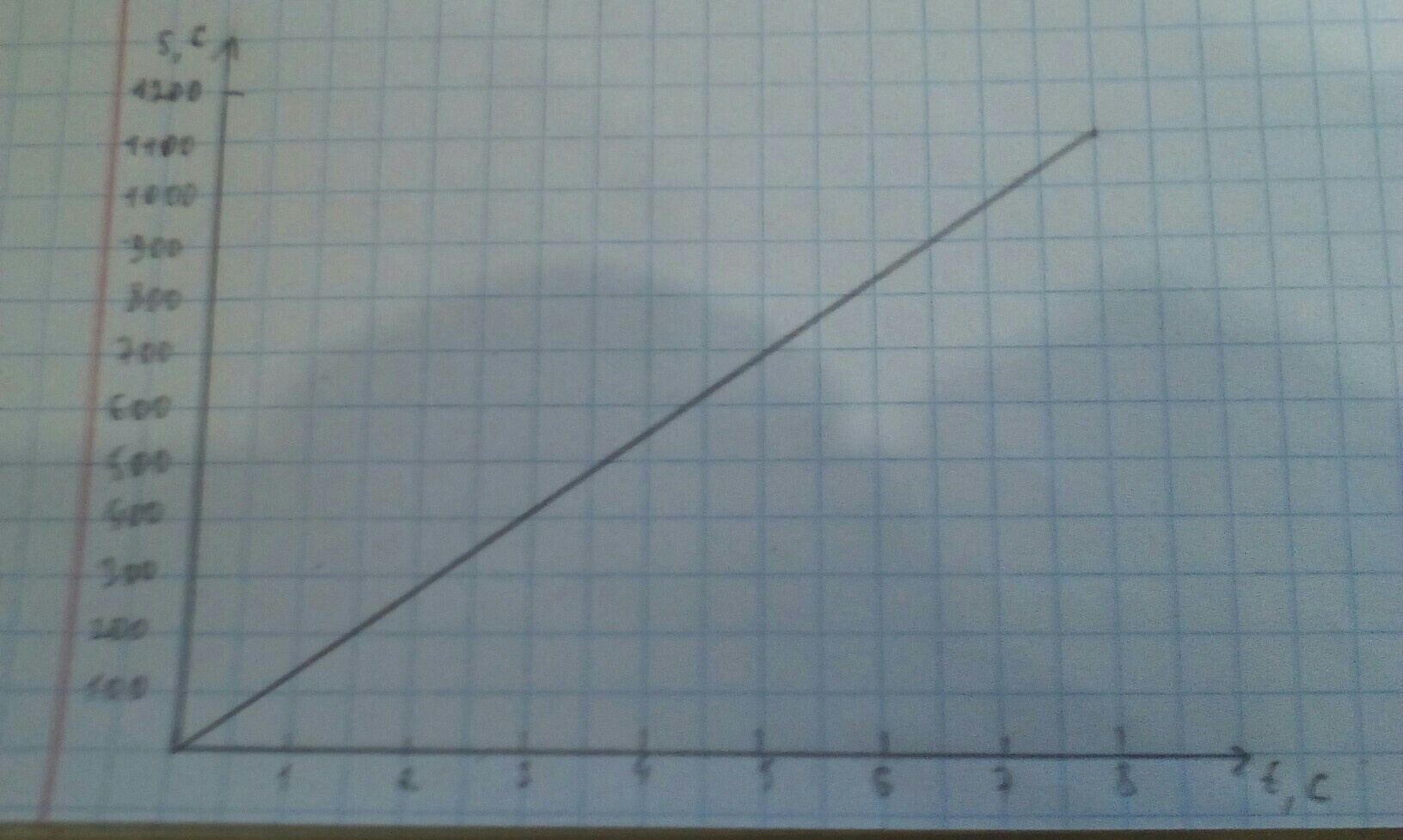 Велосипедист в течение 150 с двигался со скоростью 8/c. Начертите график зависимости пройденного им пути от времени.