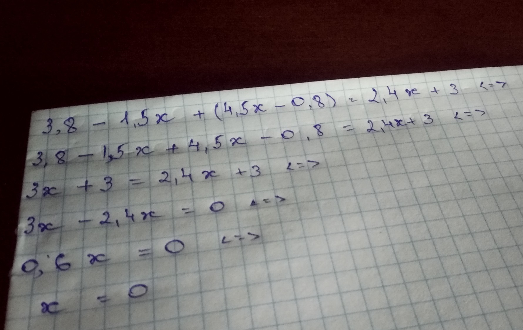 3,8-1,5х+(4,5х-0,8)=2,4х+3