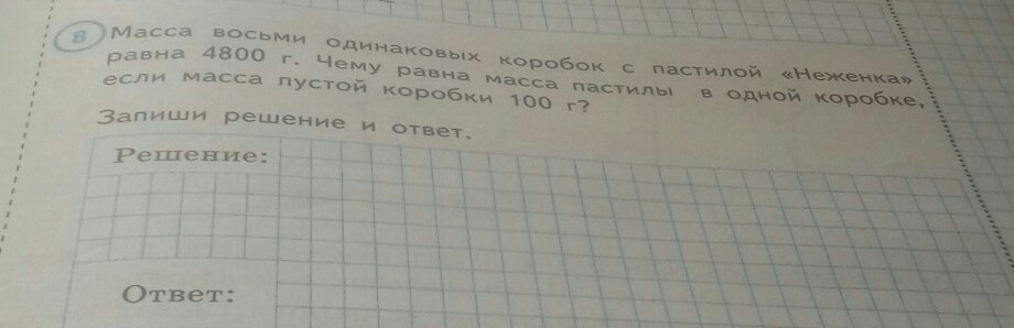 8 коробок = 800 грамм =>4800-800=4000 грамм пастилы(без коробок)
