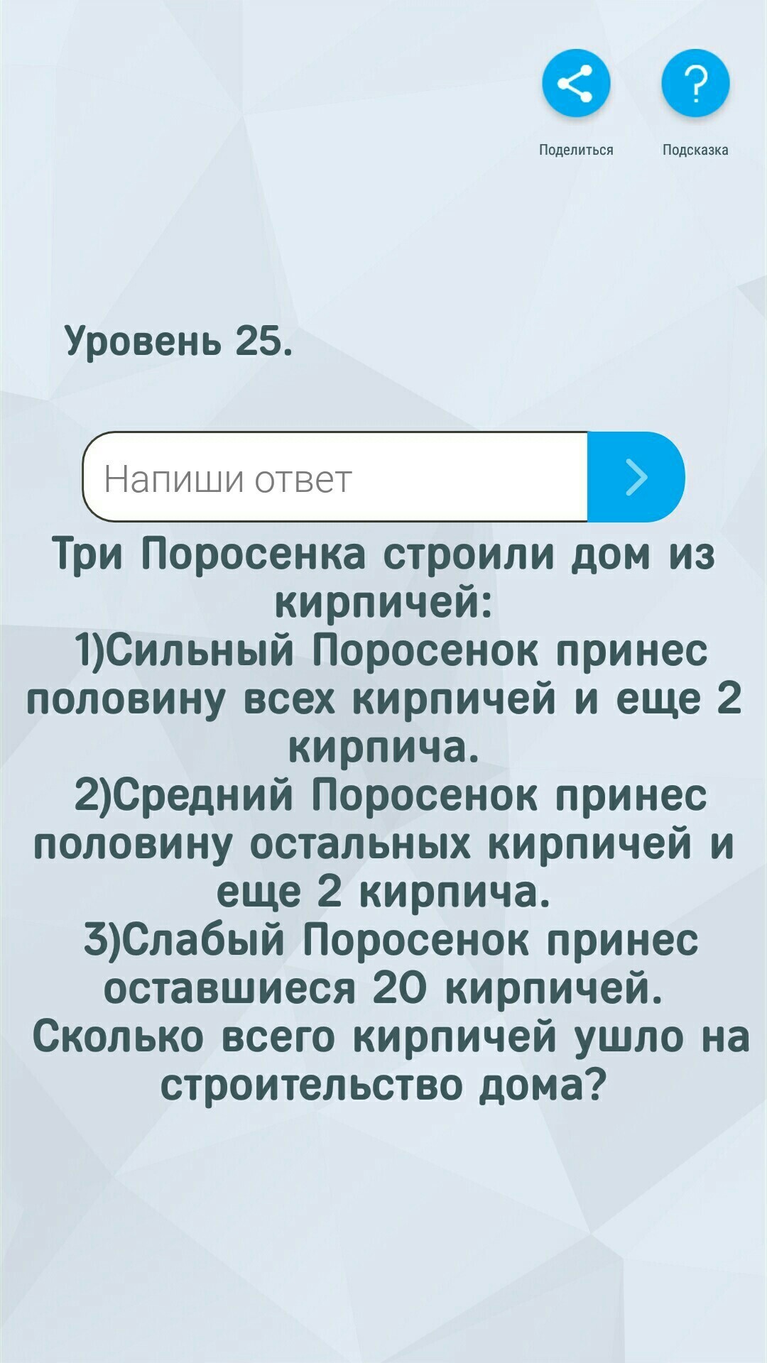 44 * 2 = 46 (к.) ------- половина всех кирпичей
