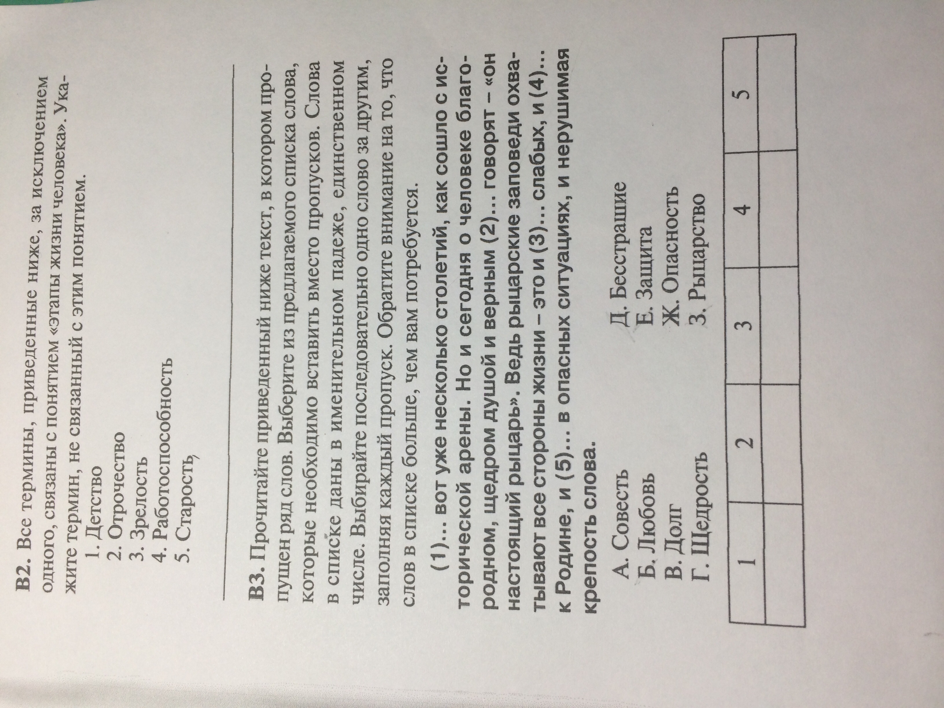 7-1; 8-3; 9-2; 10-3; В1. 1-а. 2-г. 3-б. 4- в; В2-4; В3-(1)РЫЦАРСТВО, (2)ДОЛГУ,(3) ЗАЩИТА,(4) ЛЮБОВЬ,(5) БЕССТРАШИЕ.