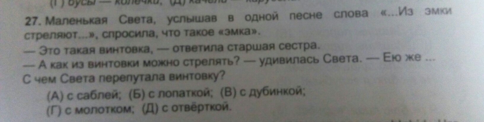 Света подумала, что винтовка-это от слова винт,винтик.