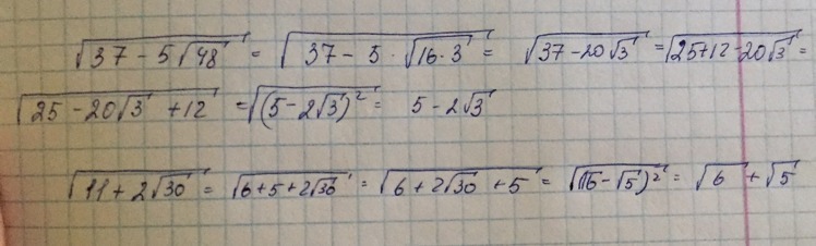 2)√37-20√3=√(5-2√3)^2=5-2√3