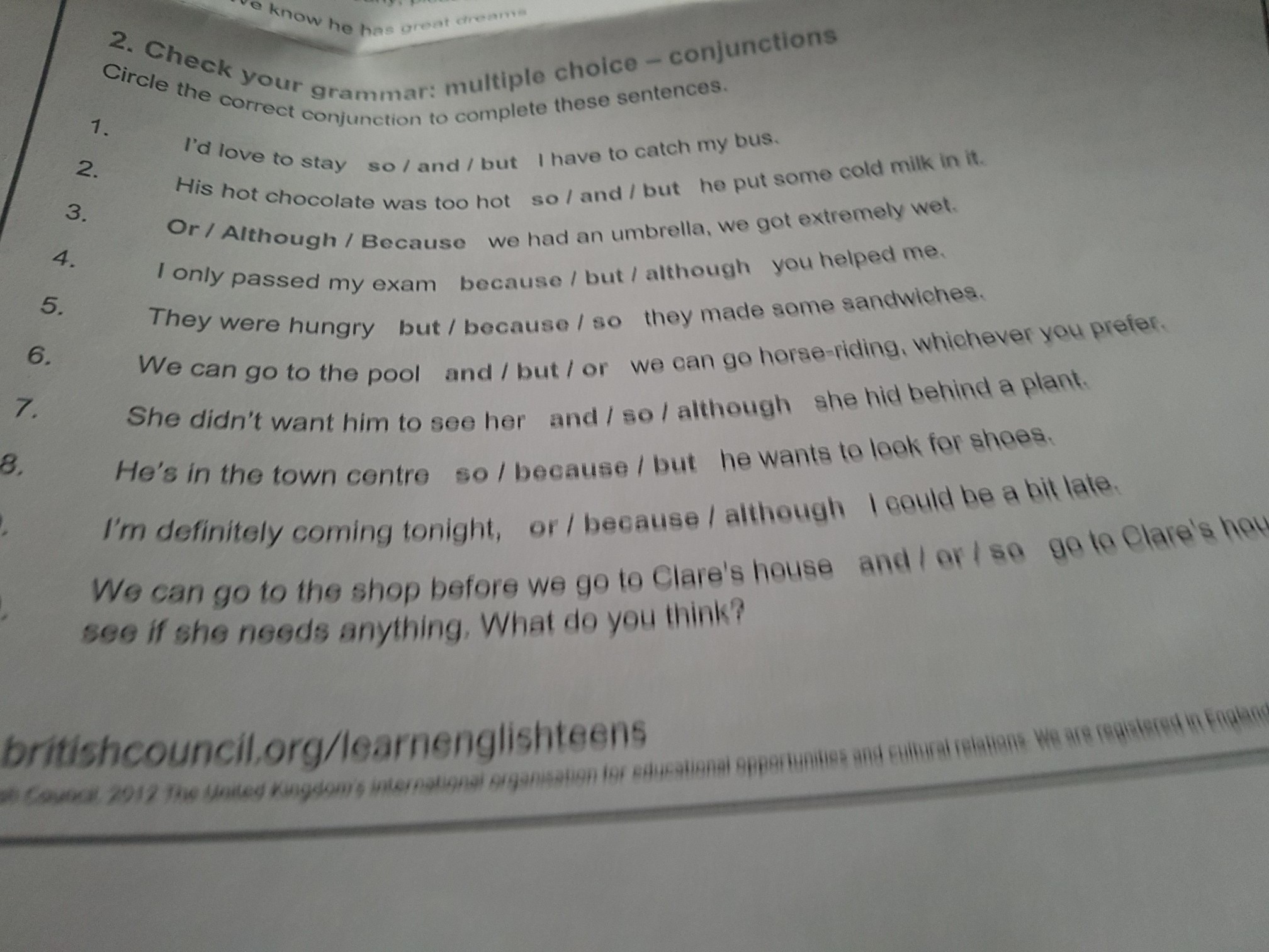 10. We can go to the shop before we go to Clare's house or go to Clare's house to see if she needs anything. What do you think?
