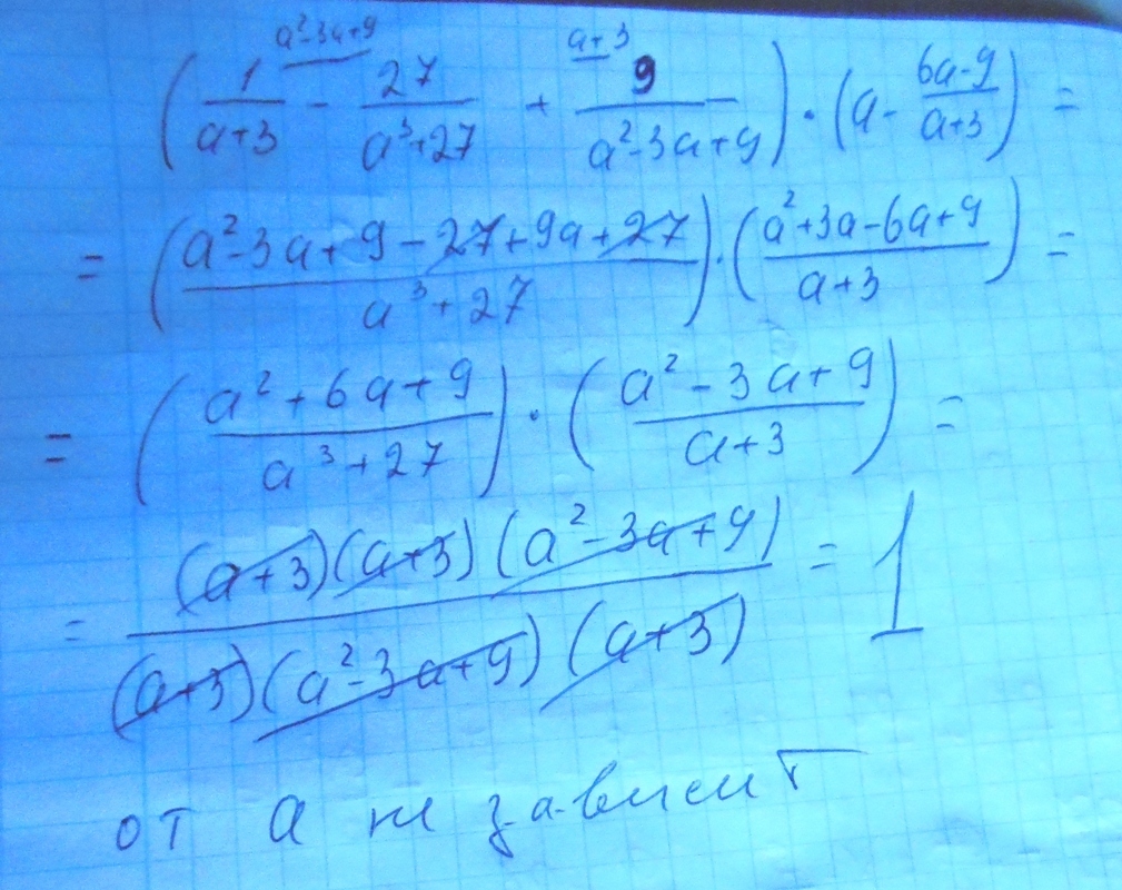 (1*(a²-3a+9)-27+9*(a+3))/(a³+27)=(a²-3a+9-27+9a+27)/(a³+27)=