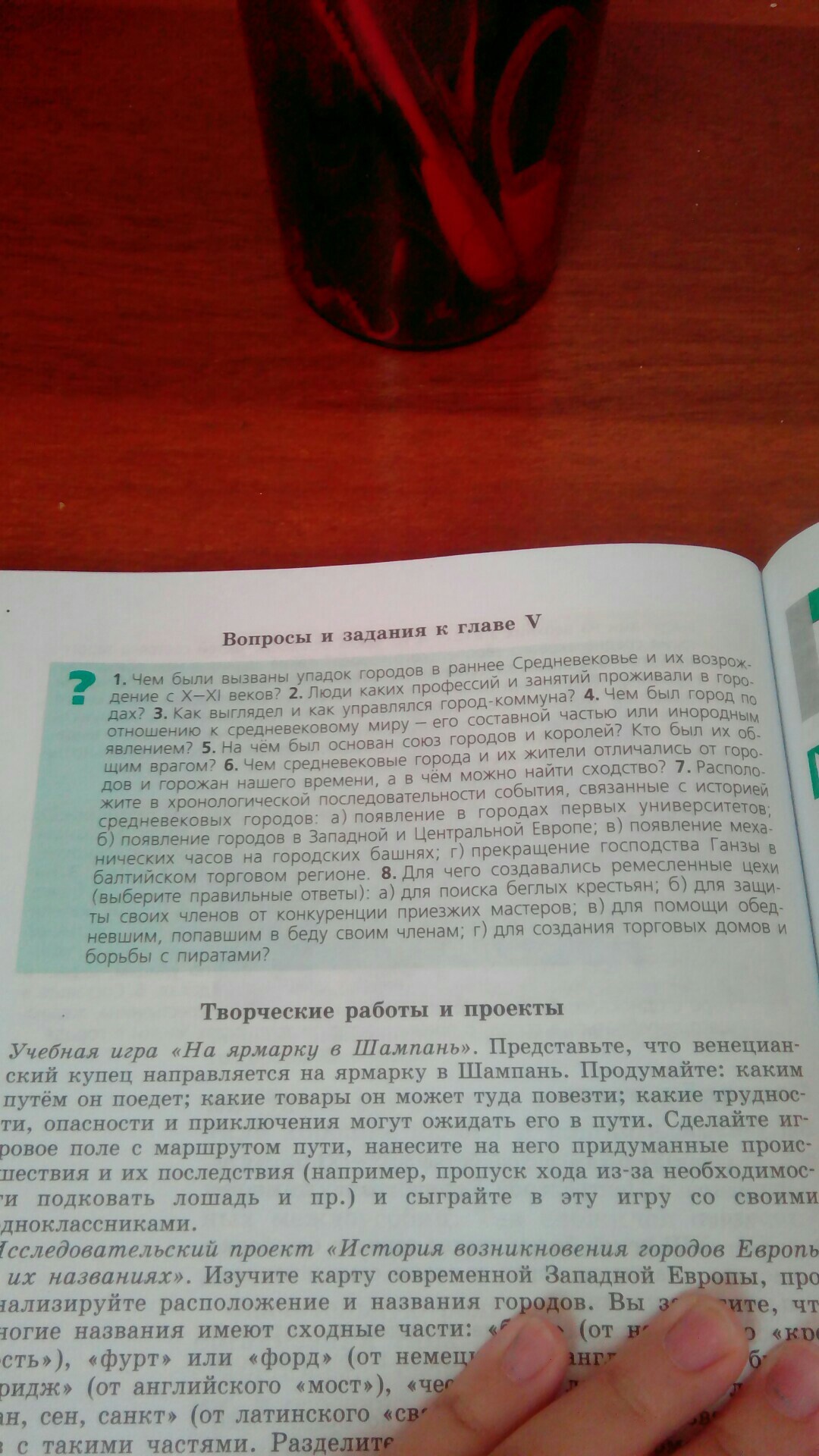 Ответ. В городах жили самые разные люди. Например, купцы (среди которых были и относительно бедные, и богатые, включая владельцев кораблей), на купеческих кораблях служили матросы. Также здесь жили ремесленники, причём на каждого мастера приходилось несколько подмастерьев и учеников. Богатые люди владели в городах домами и участками земли. Бедняки, многие из которых только пришли в город из деревни, часто нанимались слугами или даже подёнщиками.