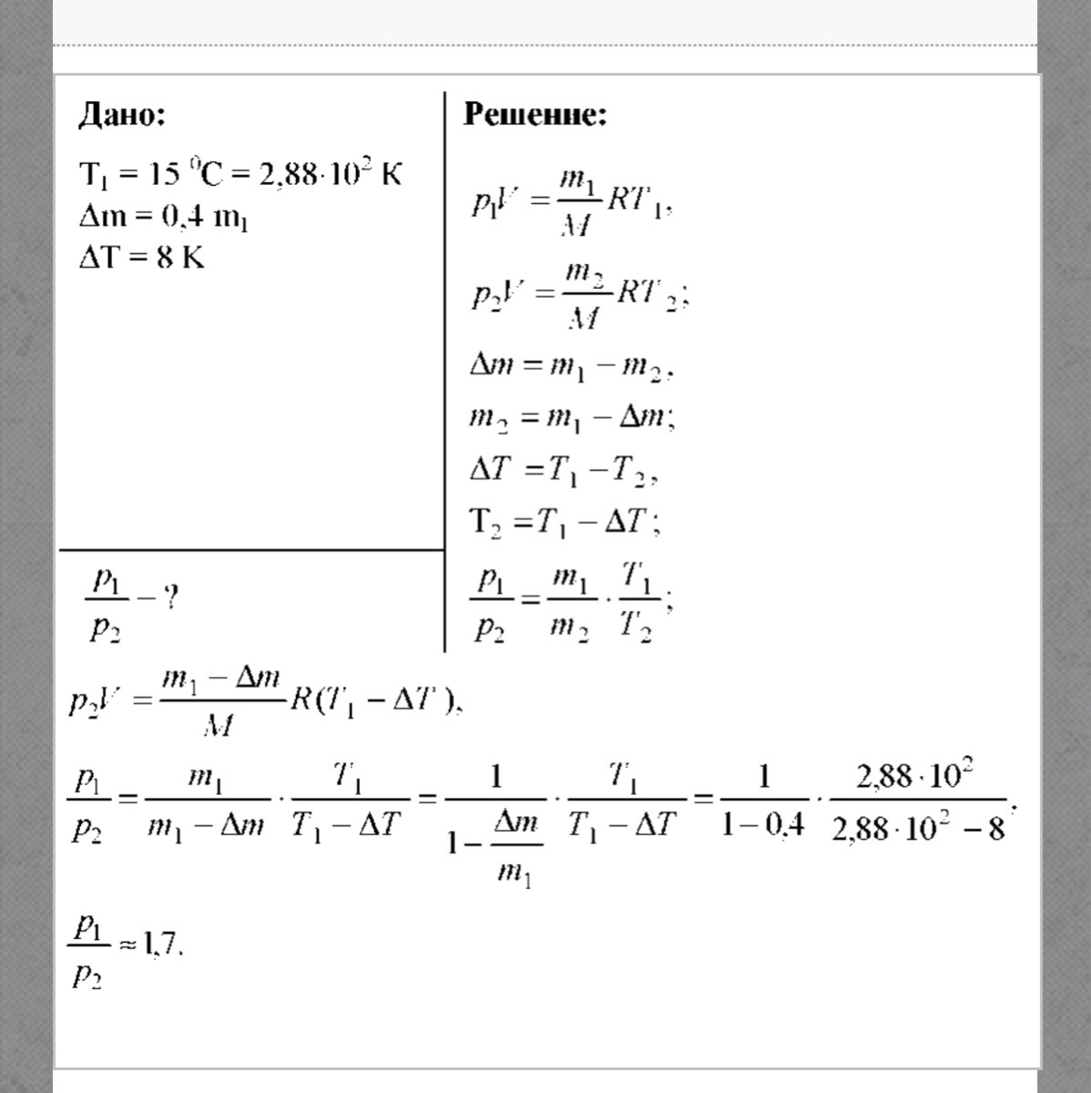 в баллоне находится газ при температуре 27, как изменится давление этого газа, если 30% газа выйдет из баллона, а температура при этом понизится на 20?