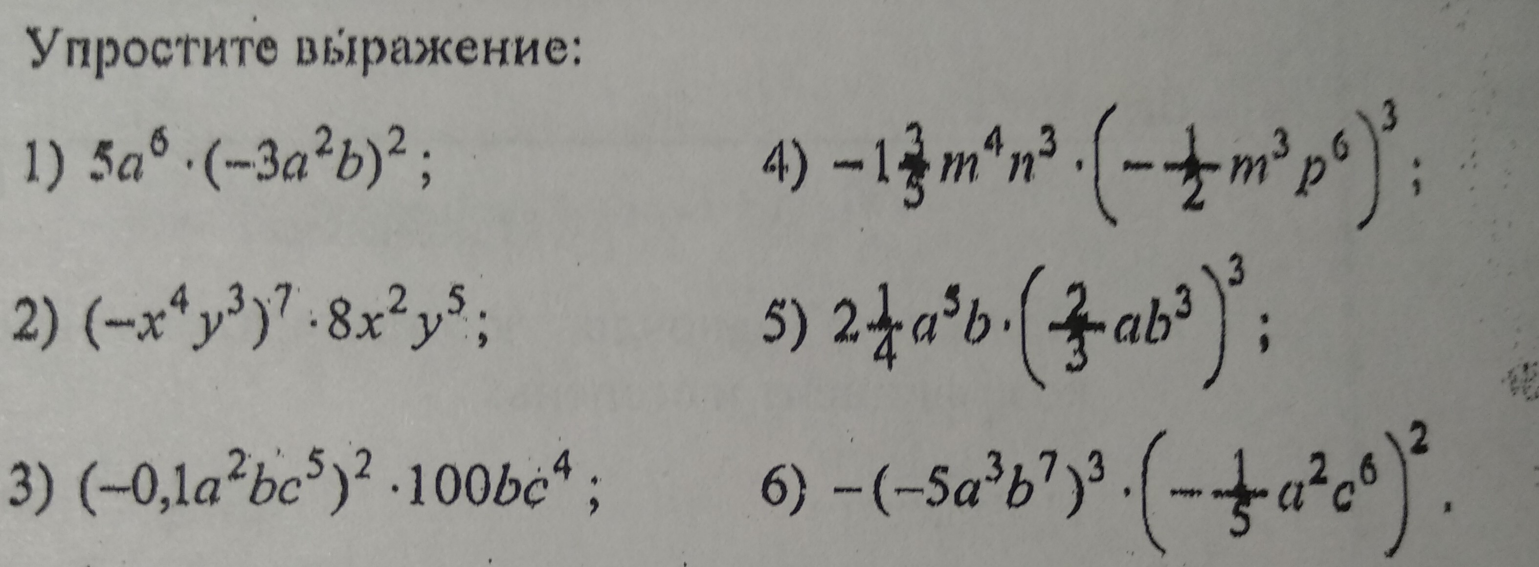 5) 2*(1/4)a^5b*((2/3)ab^3)^3 = a^5b*(4/27)a^3b^9=(4/27)a^8b^10