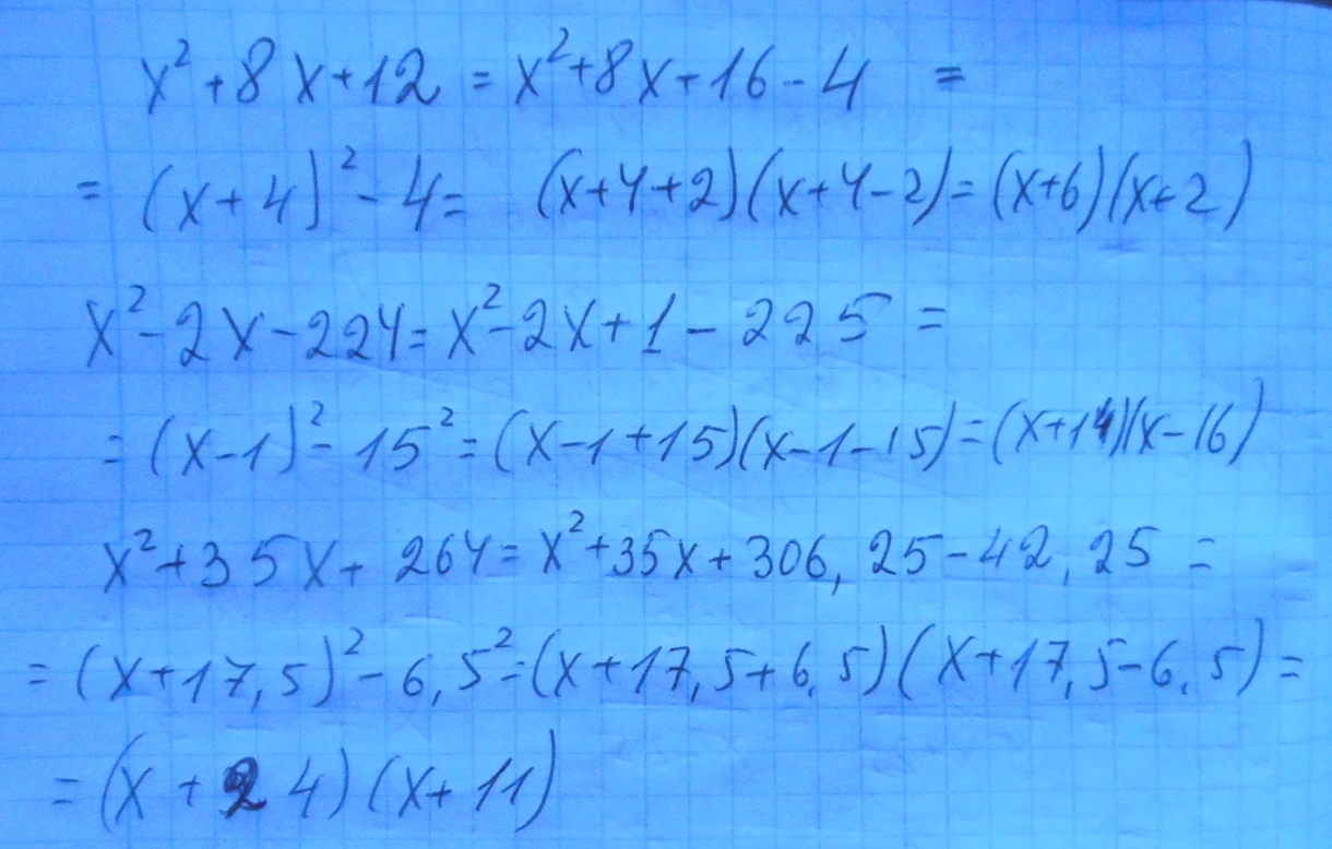 3)Разложите на множители квадратный трехчлен: x^2 + 35 x + 264