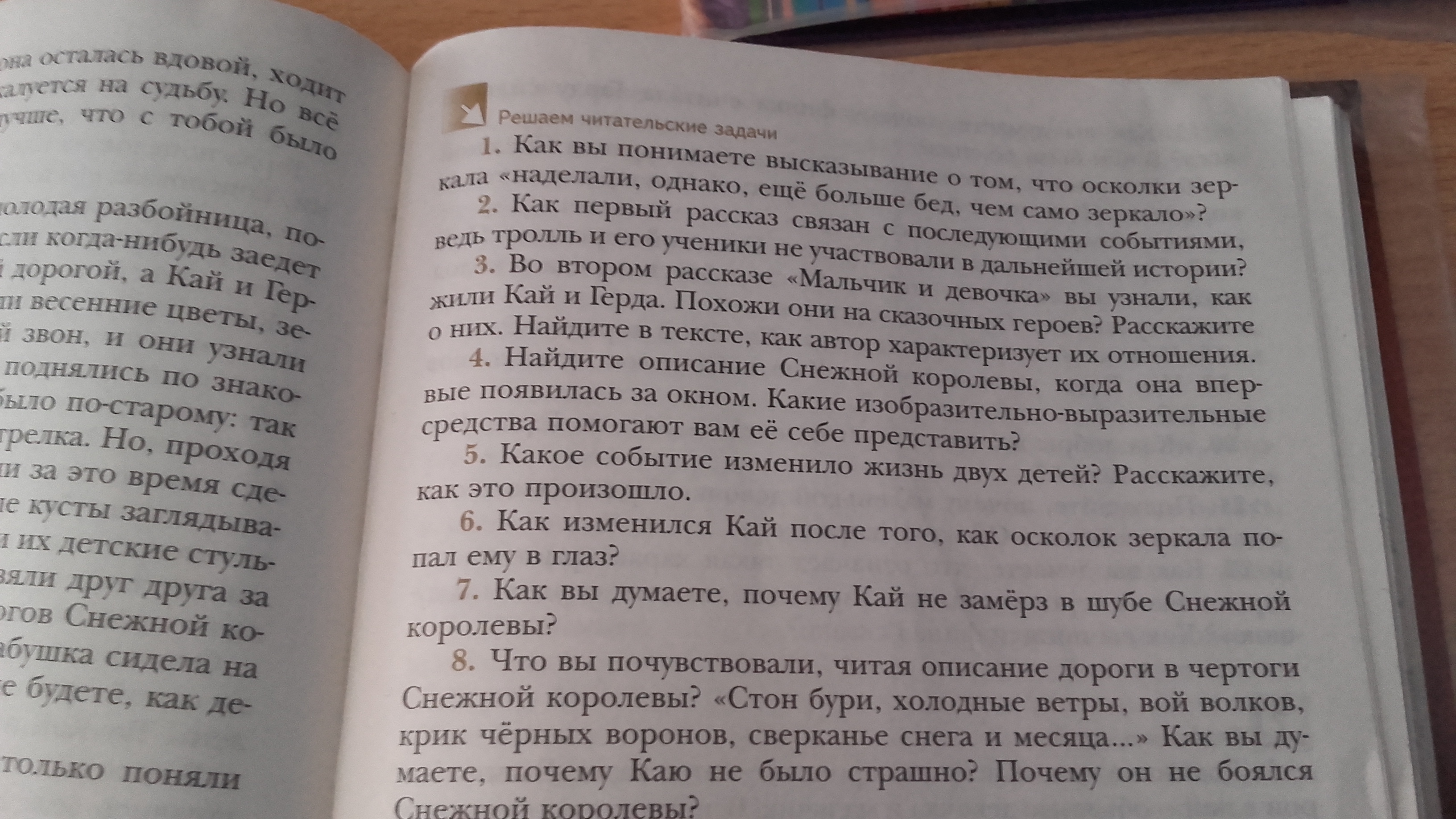 6)красоту он теперь воспринимал иначе: розы кажутся ему безобразными, зато он восхищается правильностью и строгостью форм снежинки и Снежной королевы он не испугался, как в первую встречу, а видит в ней красоту и совершенство.
