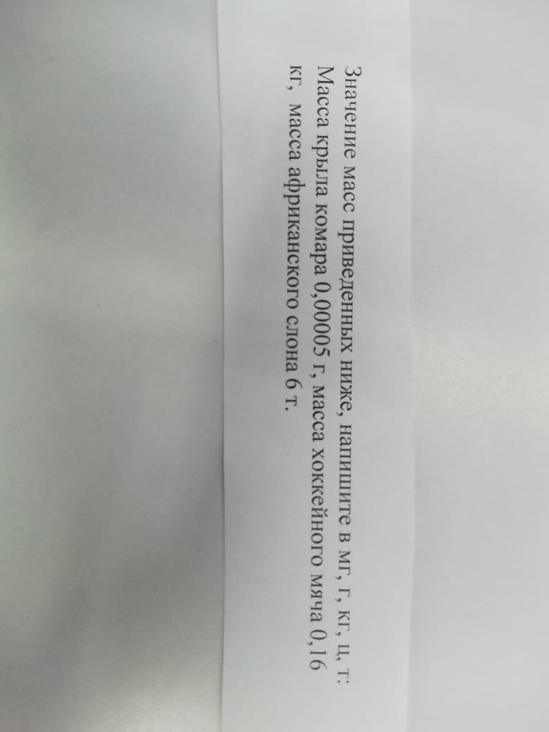 крыло комара 0,05мг хоккейный мяч 160000мг 160 г масса африканского слона 6000кг 6000000 г 6000000000мг 60 ц
