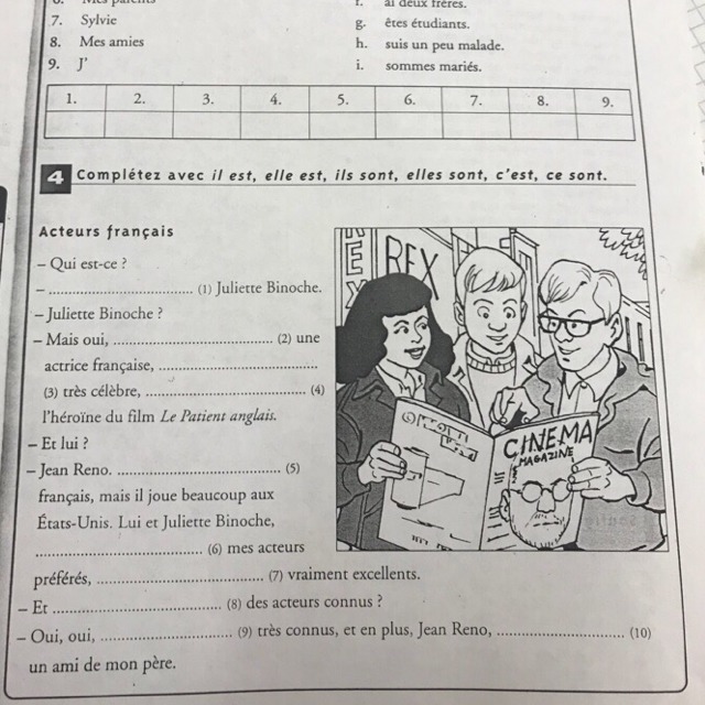 1C'est 2 c'est , 3elle est, 4 c'est, 5 il est, 6 ils sont, 7ils sont, 8 ce sont 9 ils sont 10 c'est