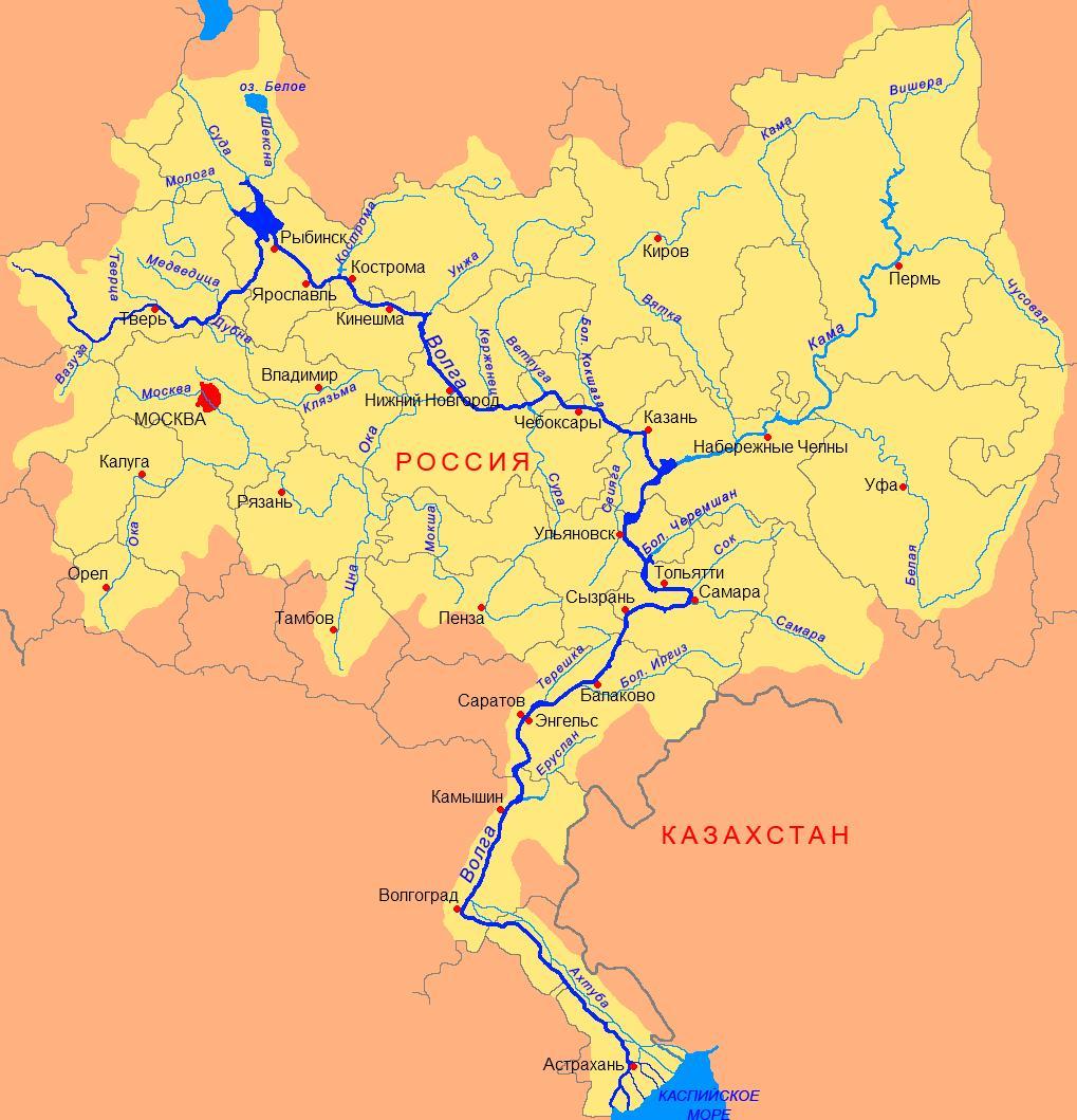 Течёт с Валдайской возвышенности (Ярославская область) и до Каспийского моря (в Астраханской области).