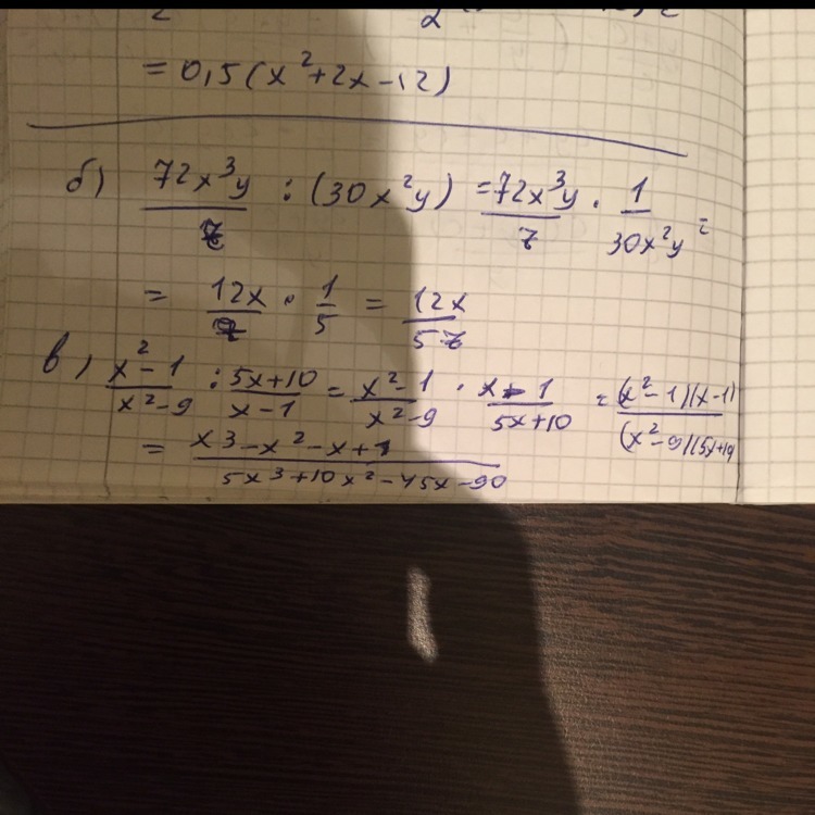б) = 72x^3y / z * 1/30x^2y = 12x/z * 1/5 = 12x/5z