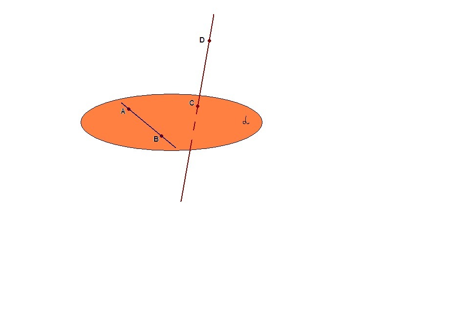 Тогда прямая АВ лежит в плоскости α (если две точки прямой принадлежат плоскости, то и вся прямая принадлежит плоскости),
