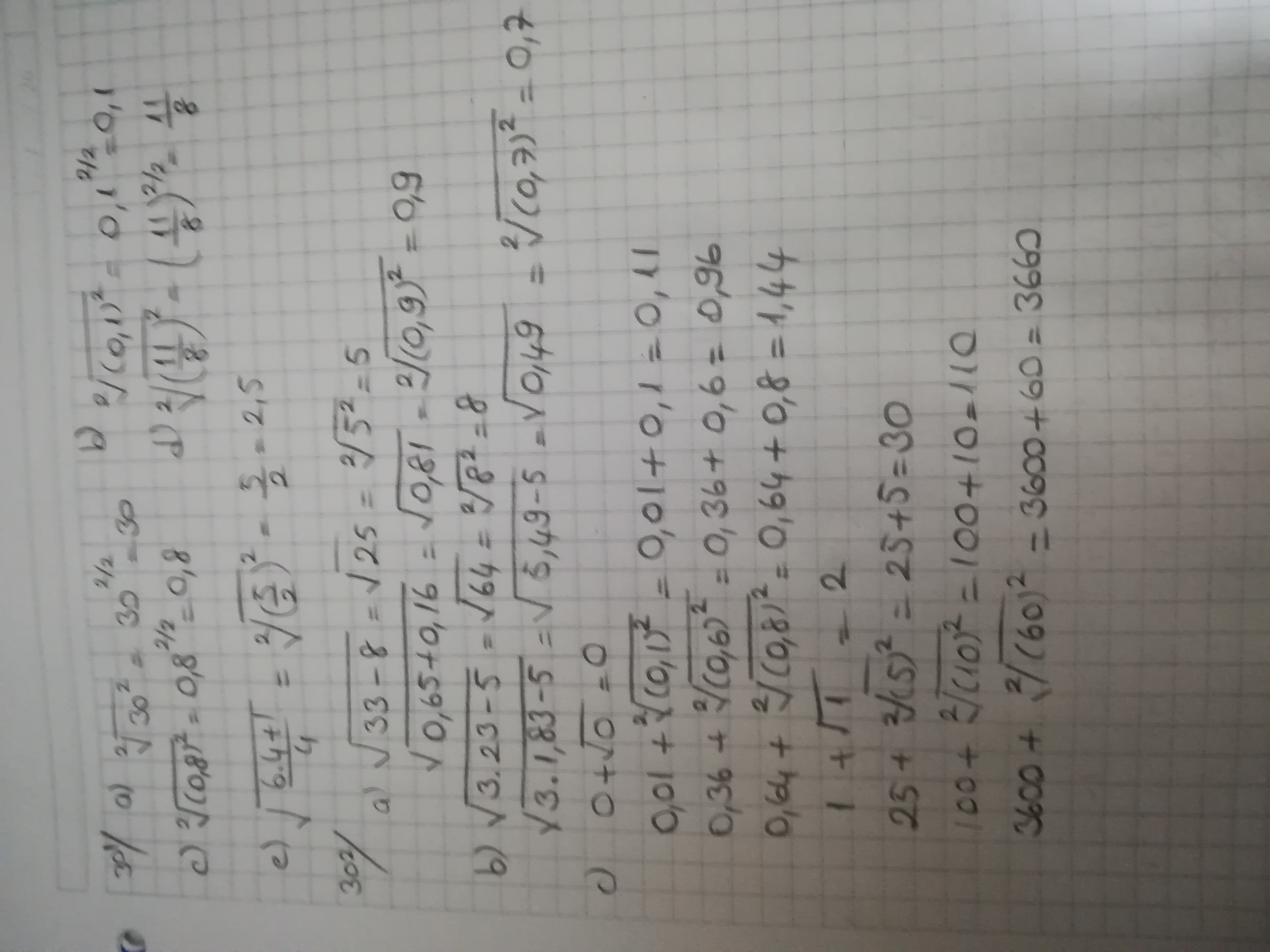302 Корень из 33-8=5, корень из 0,65+0,16=0,9.