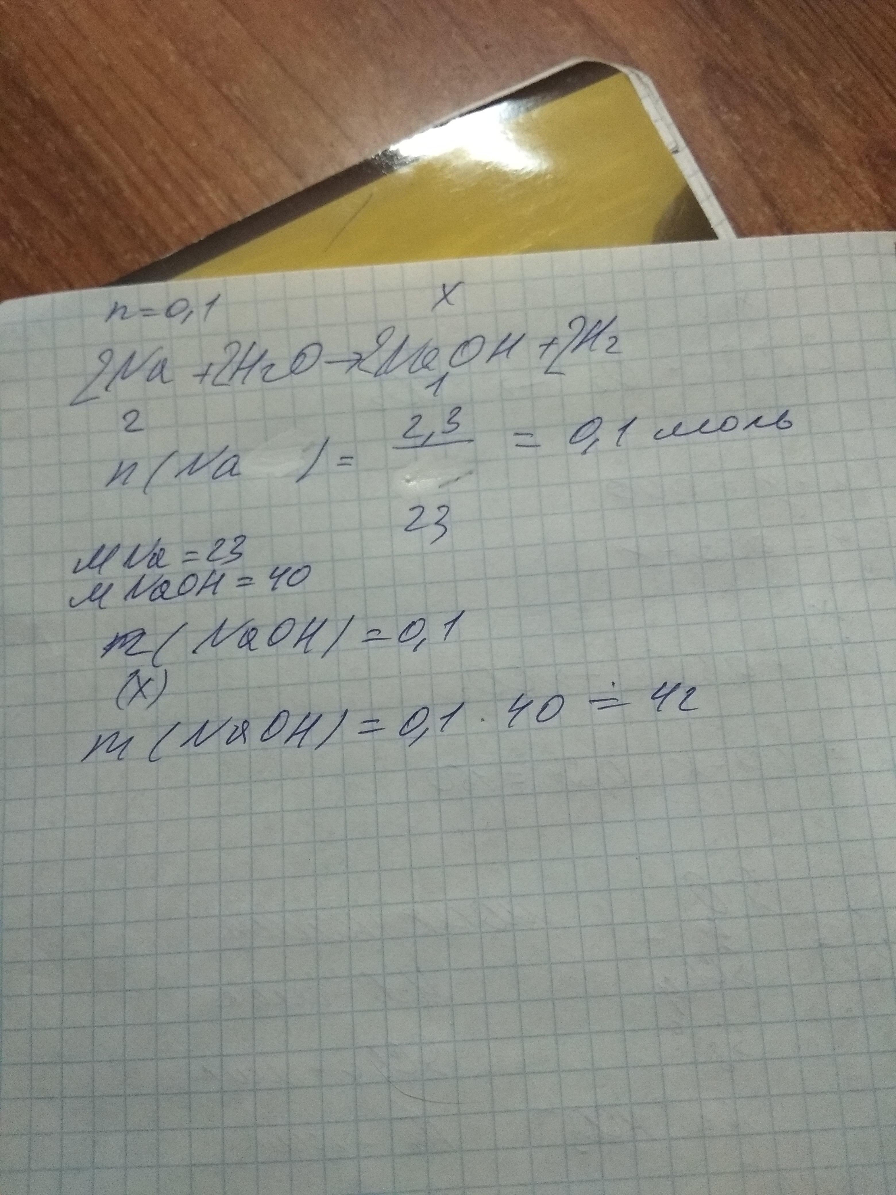 Какая масса гидроксида натрия образуется при взаимодействии 2,3г натрия с водой?