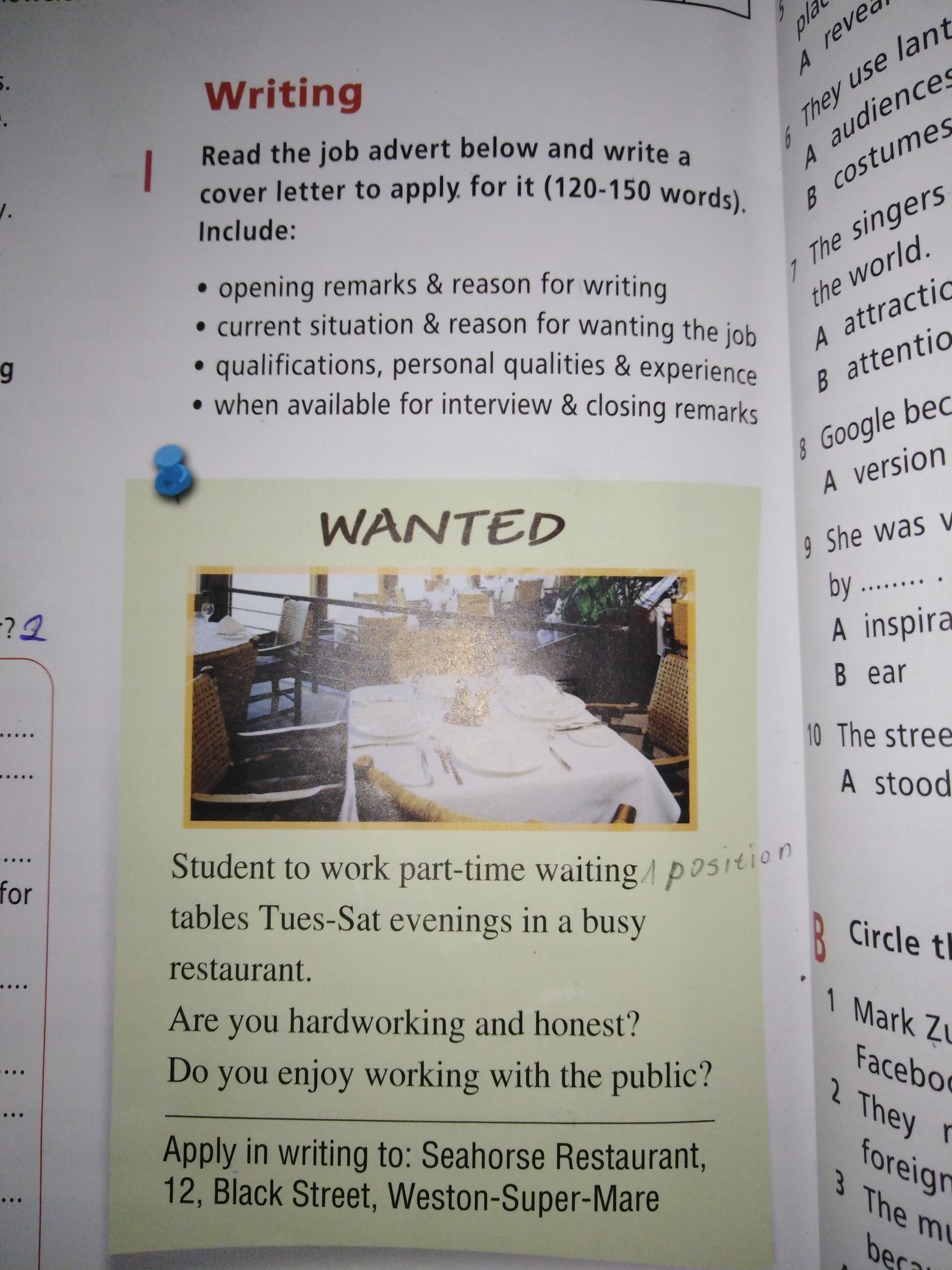 For example, last week, we went to the nearest sushi-bar. We had a great time there. First of all, the atmosphere in the restaurant was nice. There were black square tables and lots of Japanese national ornaments. We chose the table next to the window. The waiters were also very kind and welcoming. My parents don’t like Japanese food much, so they ordered simply some salads and fried chicken wings. Luckily, they don’t serve only national food in this restaurant. I ordered a portion of traditional rolls and a cup green tea. Everything was rather delicious. My parents tried a small piece of my rolls and said they weren’t bad. We asked the waiter to bring us the bill and left after paying. It was an excellent evening.