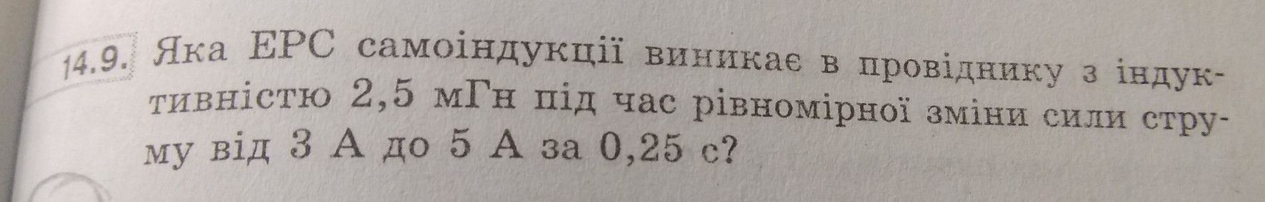 Eси = -L(I2-I1)/Δt = -2,5×10⁻³Гн × (5А - 3А) / 0,25 с = -0,02 В