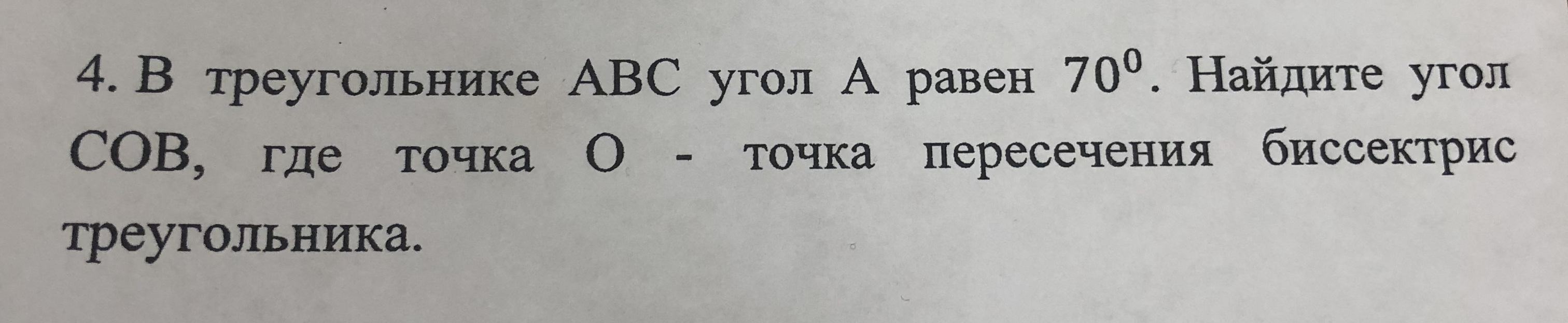 На рисунке нужно нарисовать угол в 70 градусов при помощи транспортира и поделить его пополам-это биссектриса О
