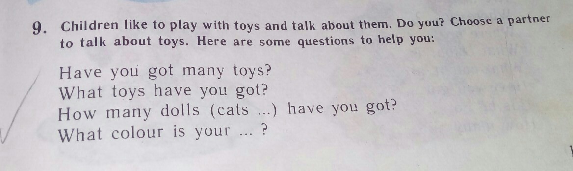 - I have got dolls, a teddy bear (плюшевый медведь), а cat and dogs.