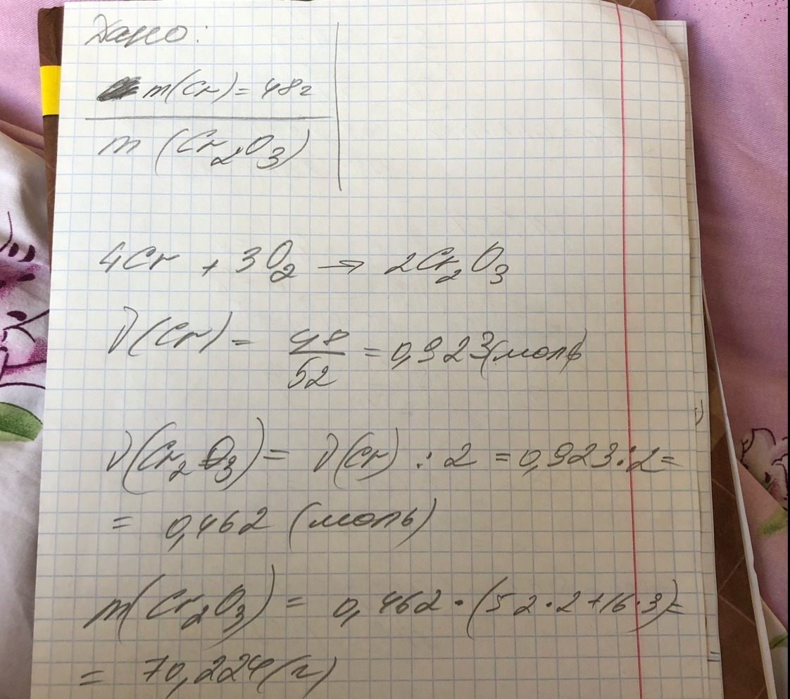 высчитать массу оксида хрома 3 если для его получения взяли хром массой 48г