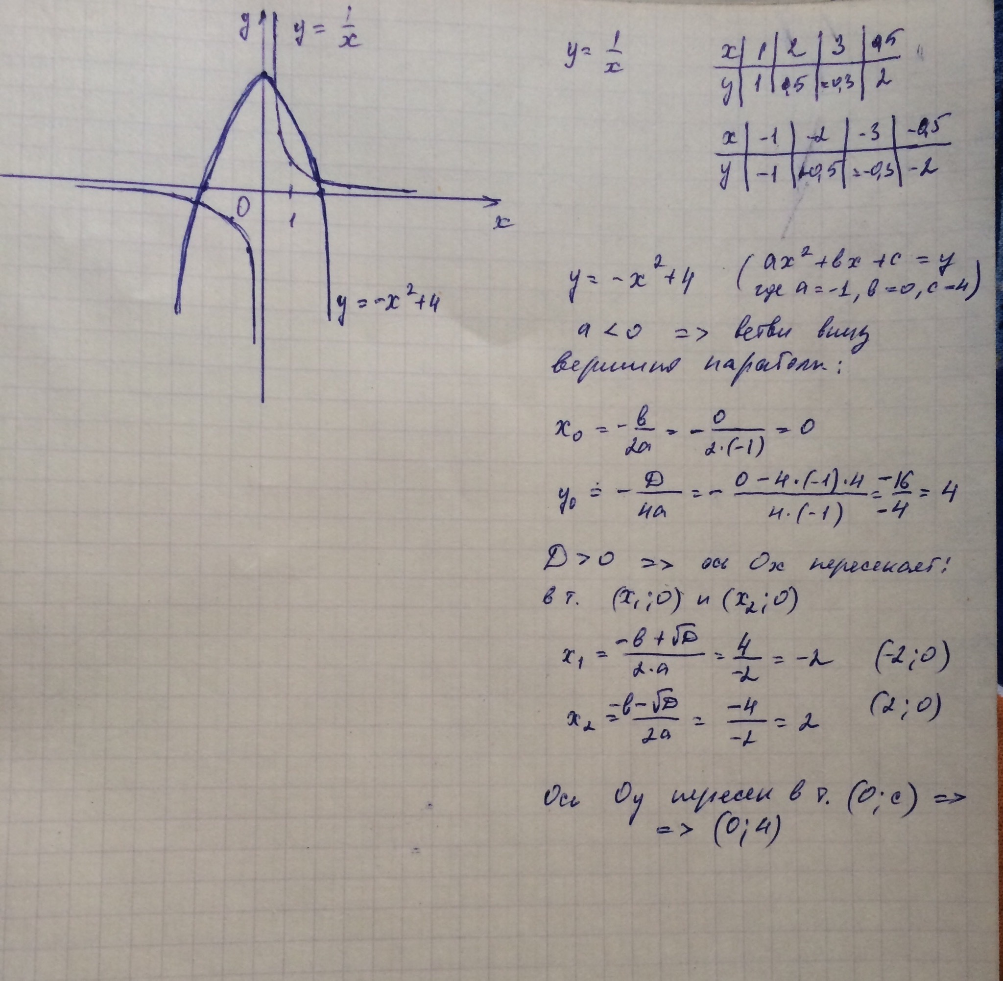 у=-х^2+4 представляет собой параболу. Его также можно построить по точкам или используем свойства параболы (см. фото)