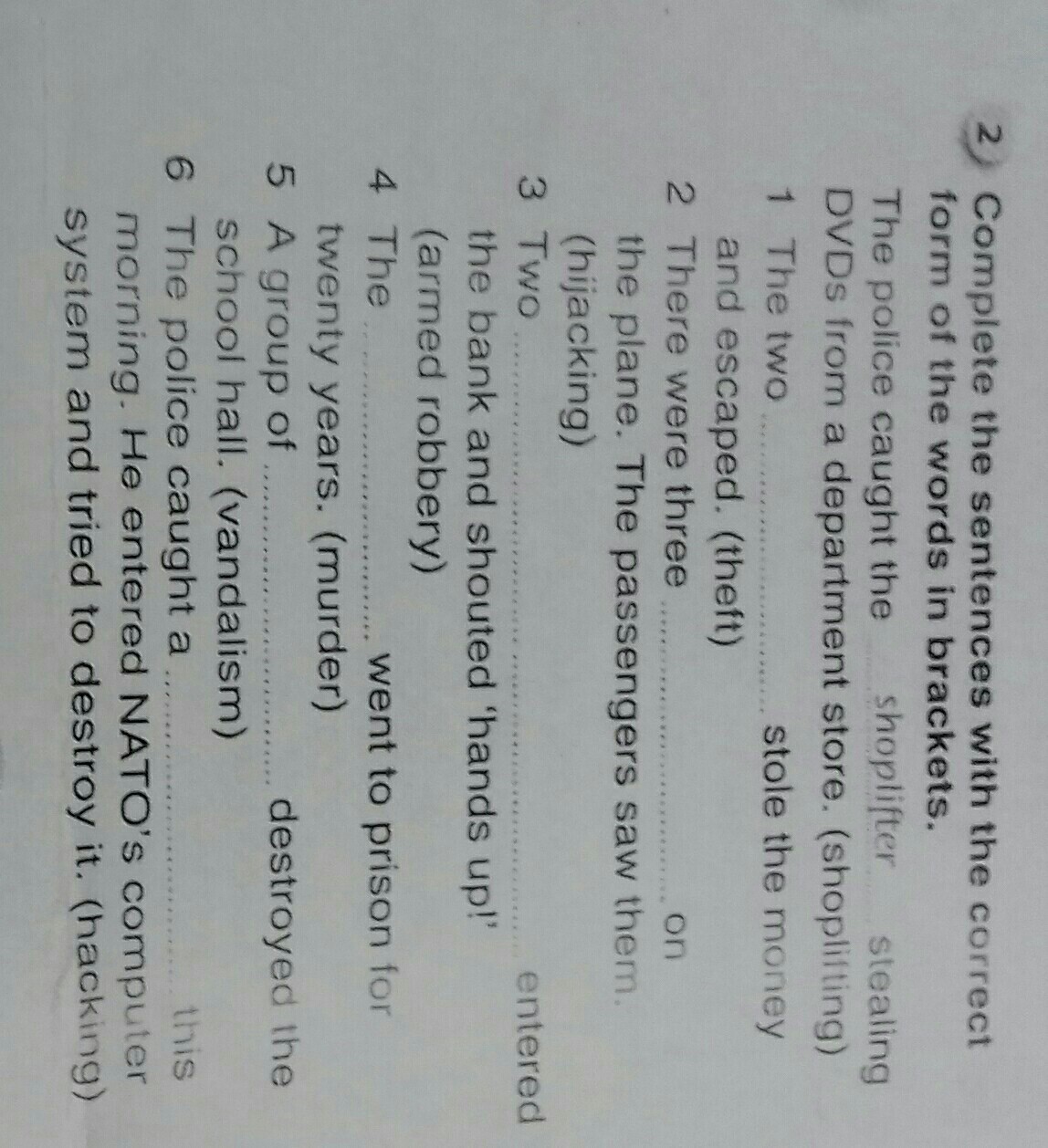 1. thefter 2. hijacker 3. armed robberiier 4.murder 5. vandalismer 6. hacker наверно правильно с богом тебя