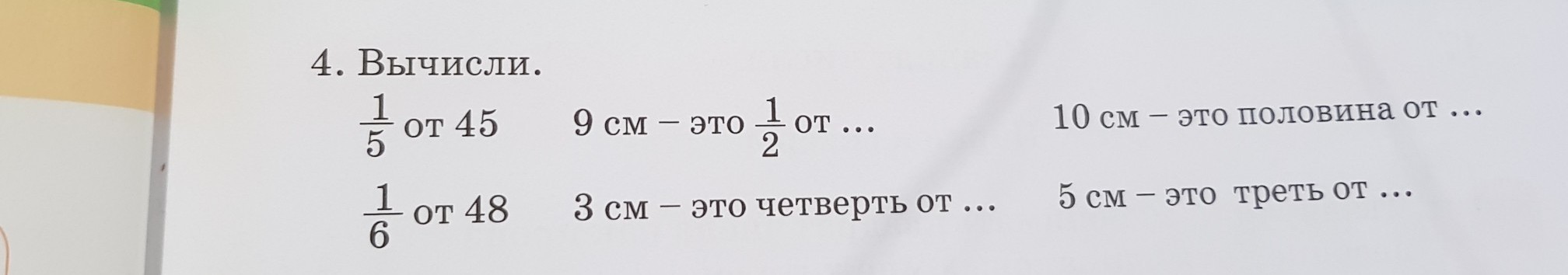 одна шестая от сорока восьми 8, 3 см четверть от 12, 5 см треть 15