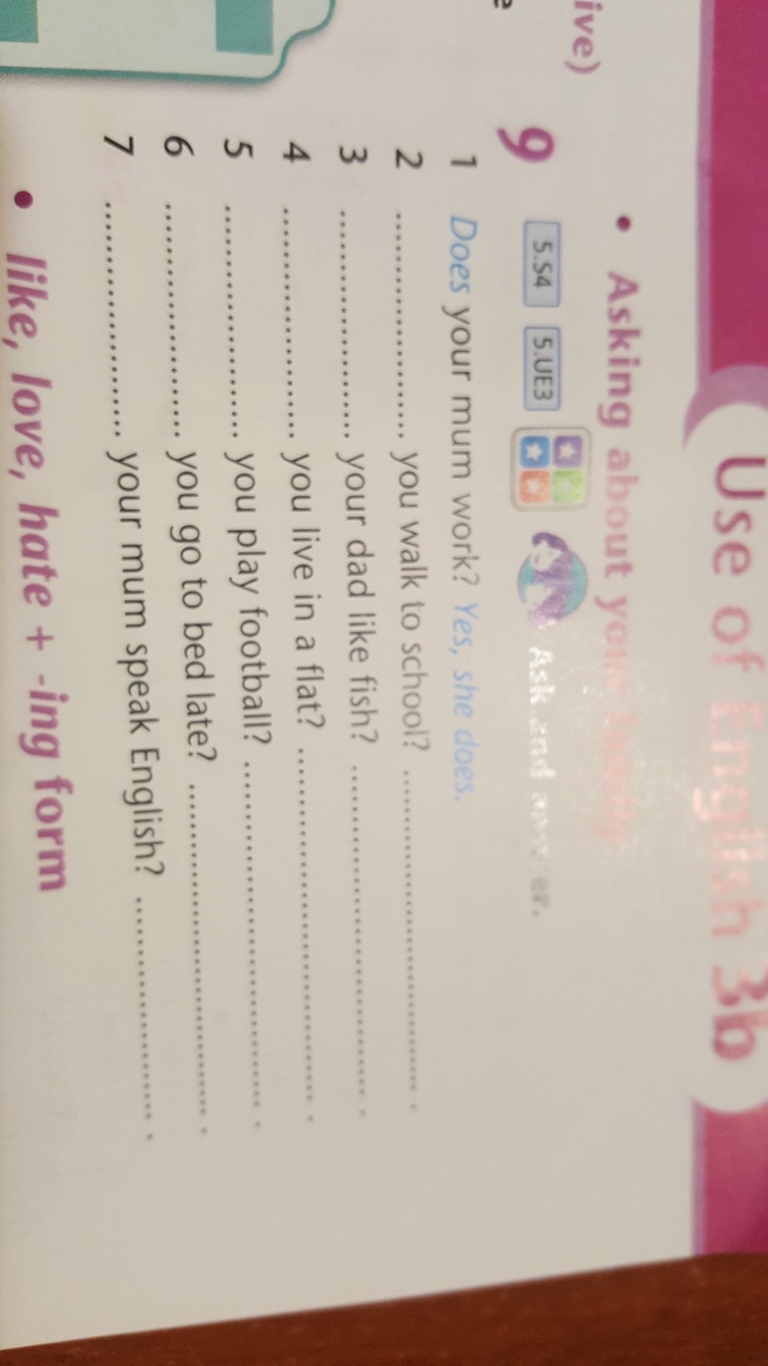 7. Does your mum speak English? Yes, she does/ No, she doesn't.