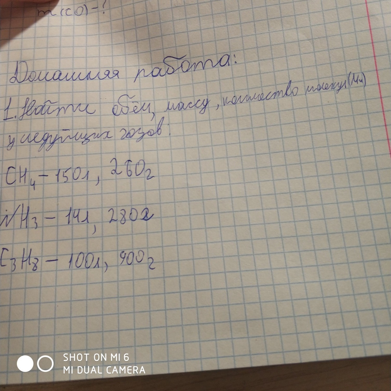 найти обем , массу, количество молекул, у следуйщих гаов : CH4-150л,260г, NH3-14л,280г , C3H8-100л,900г