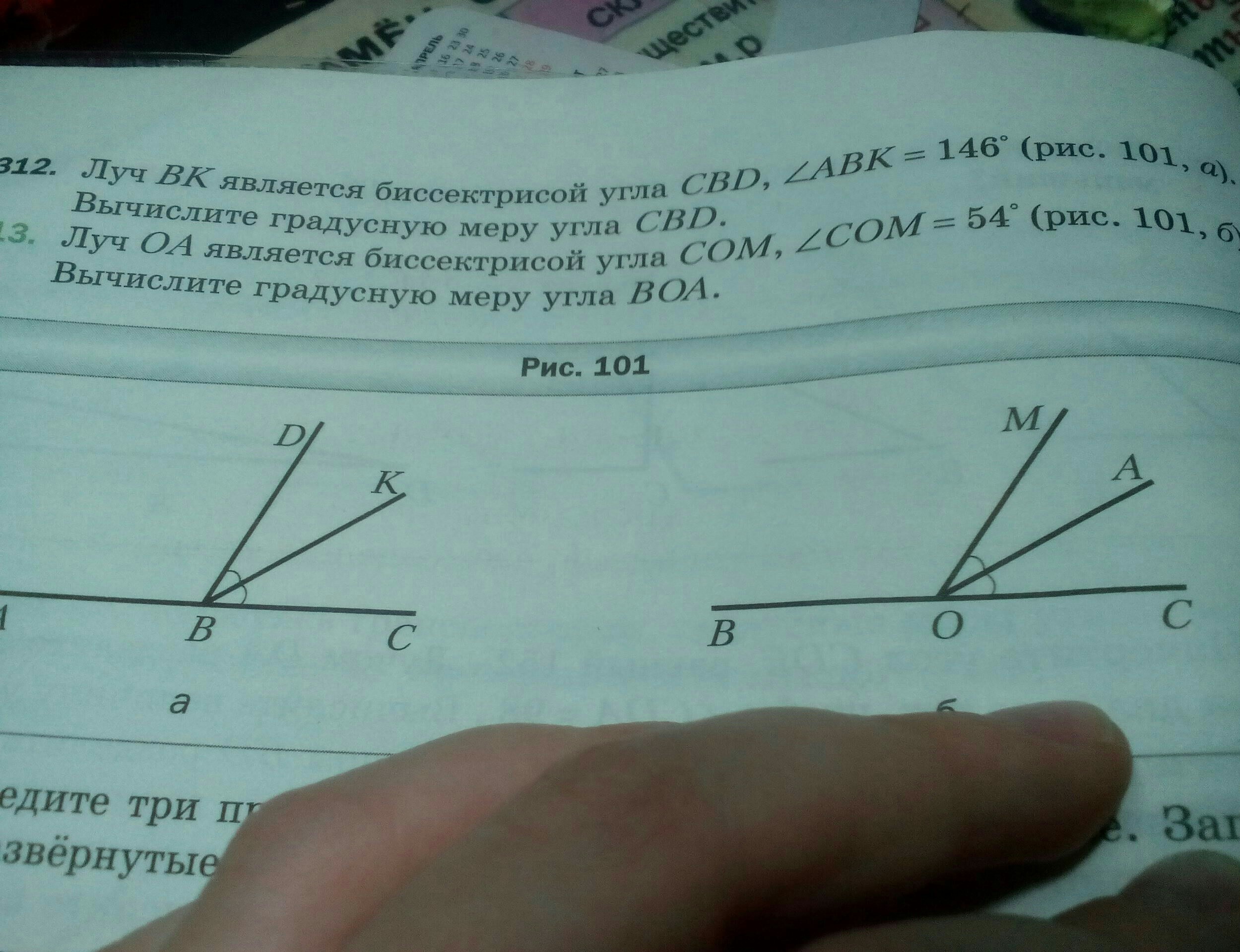 1) 54/2= 27 - МОА и АОС (биссектриса делит угол на два равных)