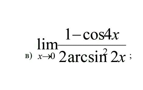 lim(x→0) [(1 - 4cos4x)/2arcsin²2x) = lim(x→0) [4sin4x · (1 - 4x²)/8] =