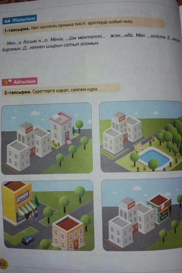 1)Менің досым көп, Менің үйім мектептің жанында, Мен үзілісте дүкенге барамын, Дүкеннен шырын сатып аламын