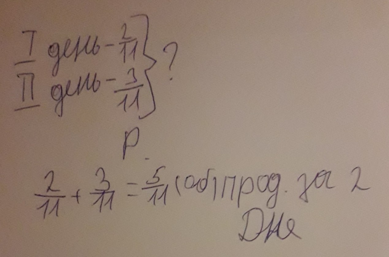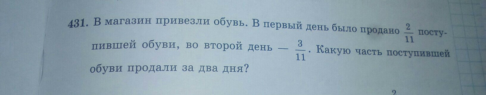 2/11+3/11=5/11 (частей) поступившей обуви продали за 2 дня
