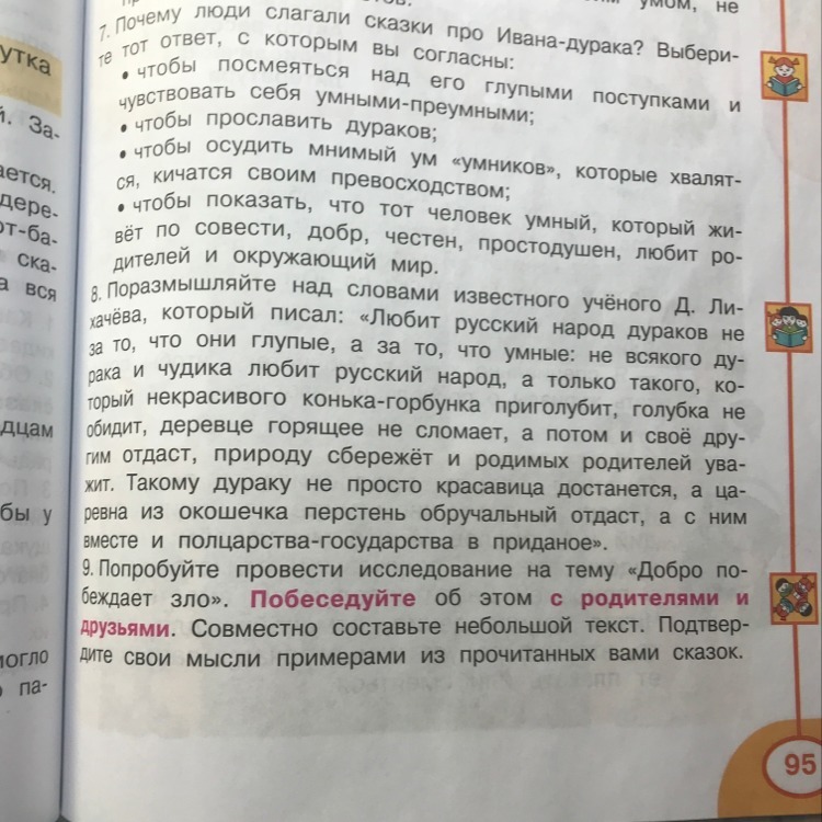 Как ни крути, а добро всегда побеждает зло. В поэме "Русла и Людмила", Руслан победил злого колдуна и забрал свою возлюбленную обратно. В этом примере Руслан олицетворяет добро, а колдун - зло. Так же и "Добрыня Никитич и Соловей Разбойник", "Алеша Попович и Тугарин Змей" ... (Дальше ты можешь описать кто там за добро, кто за зло. Надеюсь смогла хоть чем то помочь)