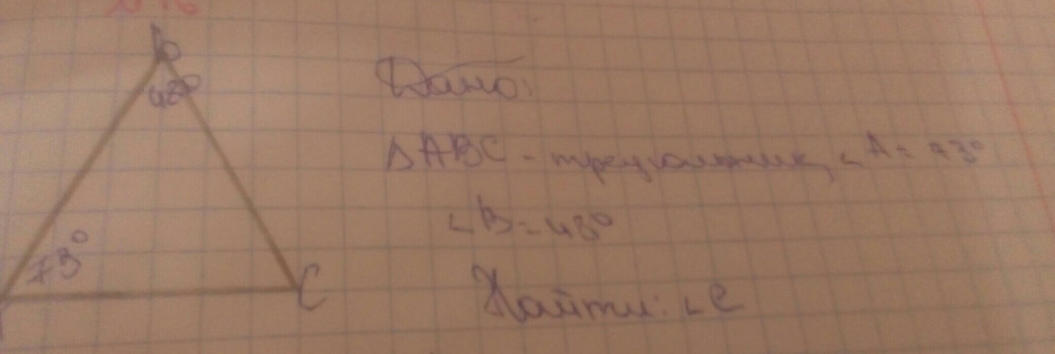 СУММА ВСЕХ УГЛОВ ТРЕУГОЛЬНИКА РАВНА 180 ГРАДУСОВ, ПОЭТОМУ УГОЛ С =180-48-73=59 ГРАДУСОВ