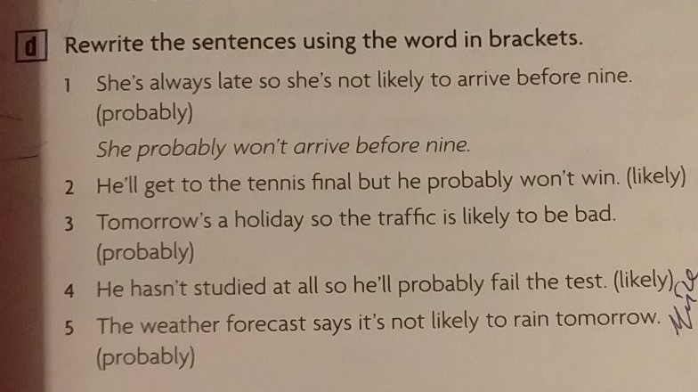 5. The weather forecast says it's will not probably rain tomorrow.(probably)