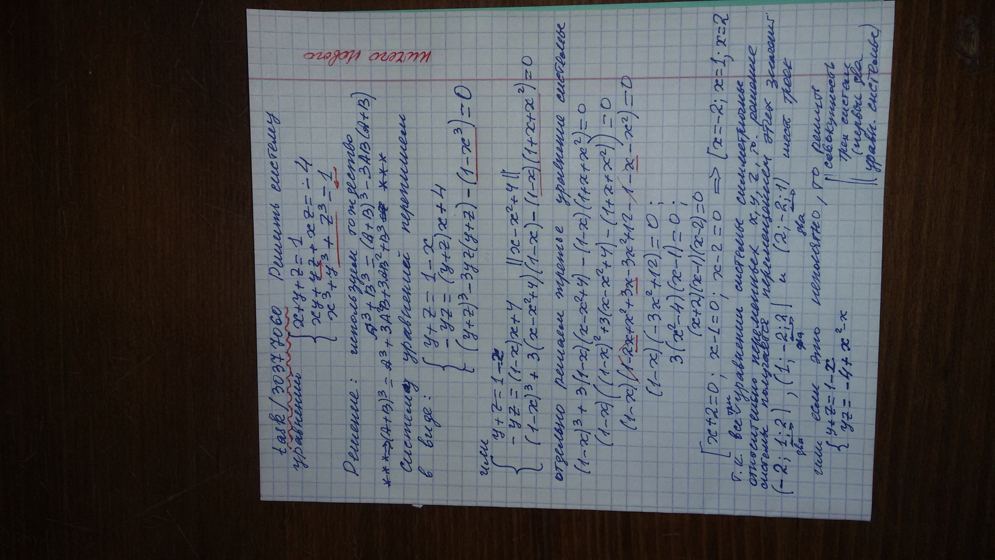 решение { x + y + z = 1 ; xy +yz +xz = - 4 ; x³+y³+z³=1 . ⇔