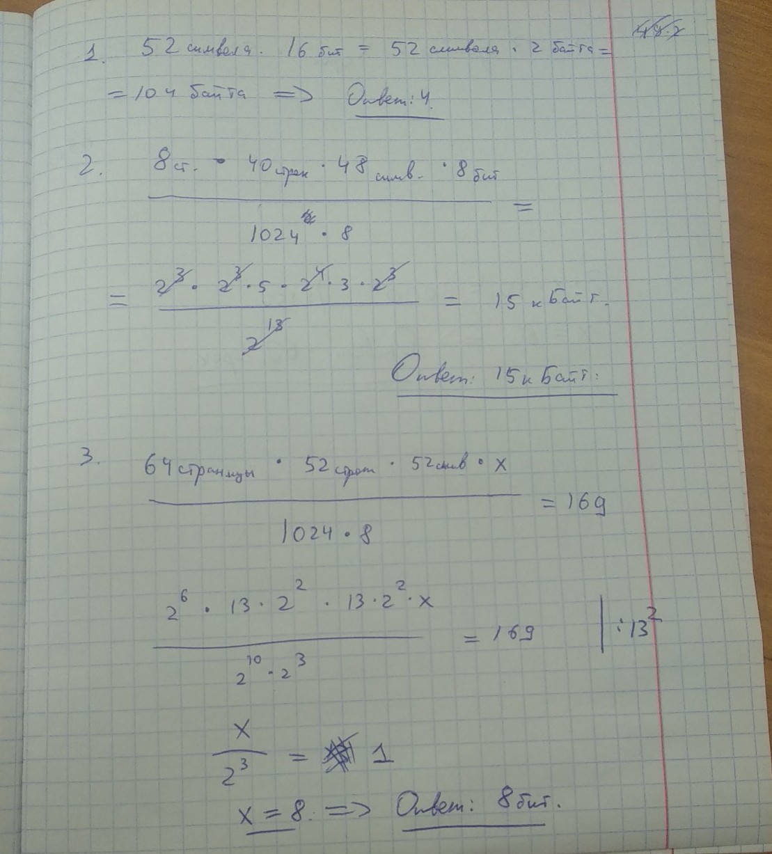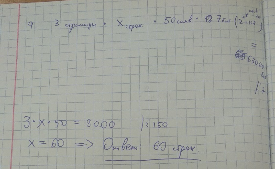 4 Сообщение занимает 3 страницы и содержит 63000 бит информации.