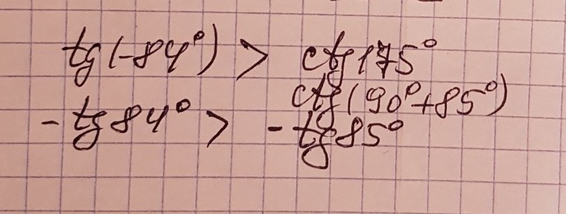 Сравните tg(-84°) и ctg175°