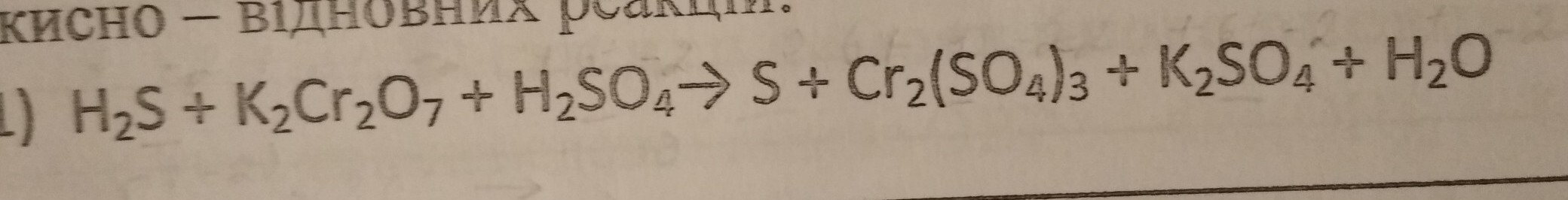 3H₂S + K₂Cr₂O₇ + 4H₂SO₄ = 3S + Cr₂(SO₄)₃ + K₂SO₄ +7H₂O