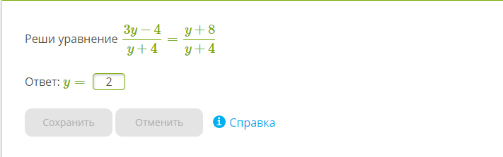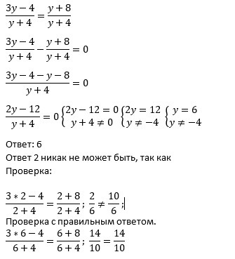 переносим вторую дробь к первой,меняем все знаки на противоположные у второй(которую переносили за равно),после вычислений получается 2у=8,у=4