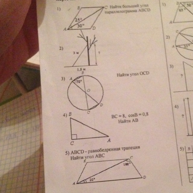 1) ∠ BAD=25+30=55°, значит ∠АВС=(360-(55*2))/2=250/2=125°