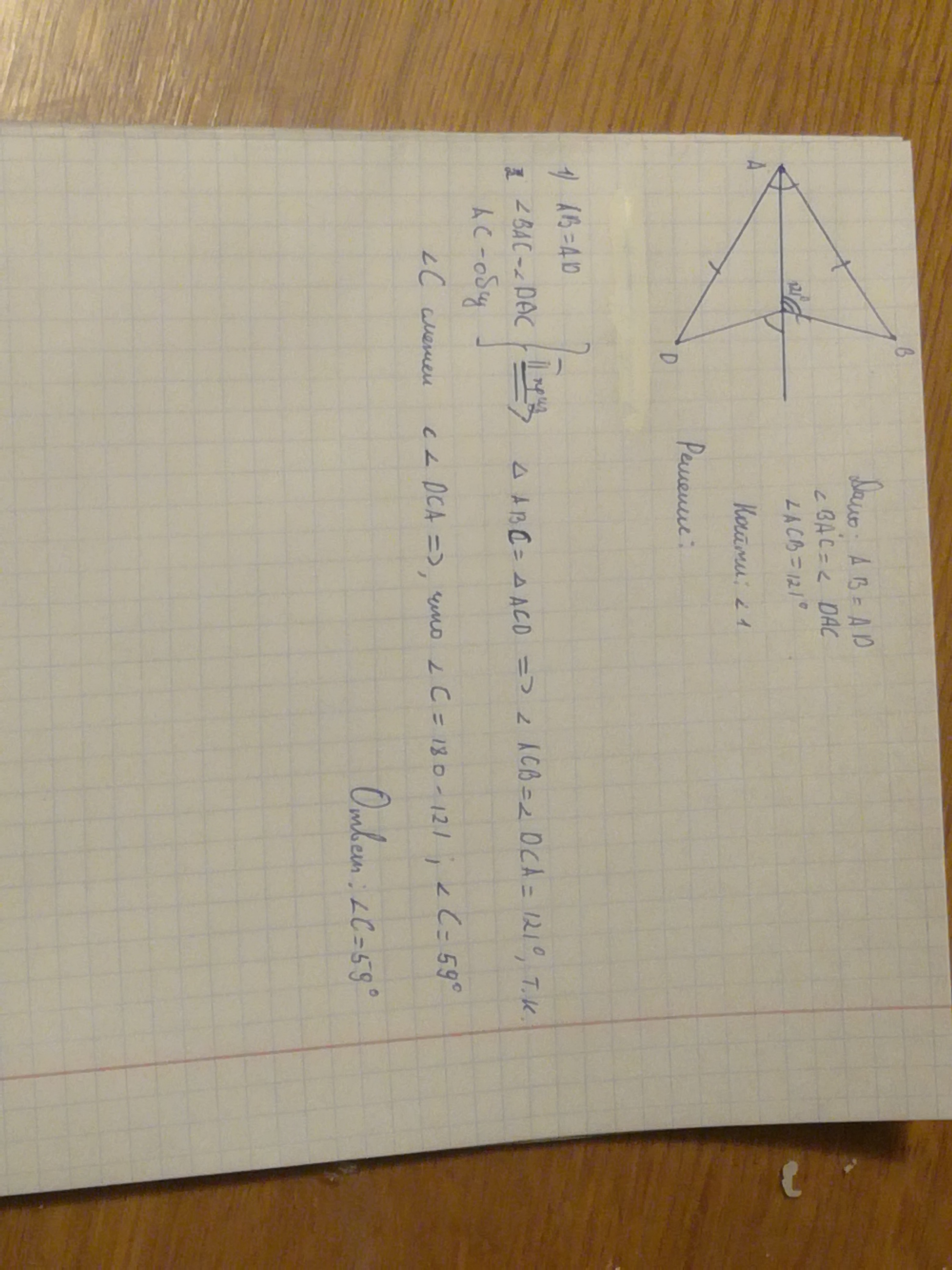 Вообще, доказываем равенство треугольников, и исходя из их равенствыа выщитываем смежный с даннвм угол