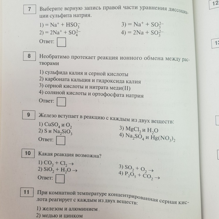 10) 1) реакция невозможна, поскольку углекислый газ (кислотный оксид) не может реагировать с хлором