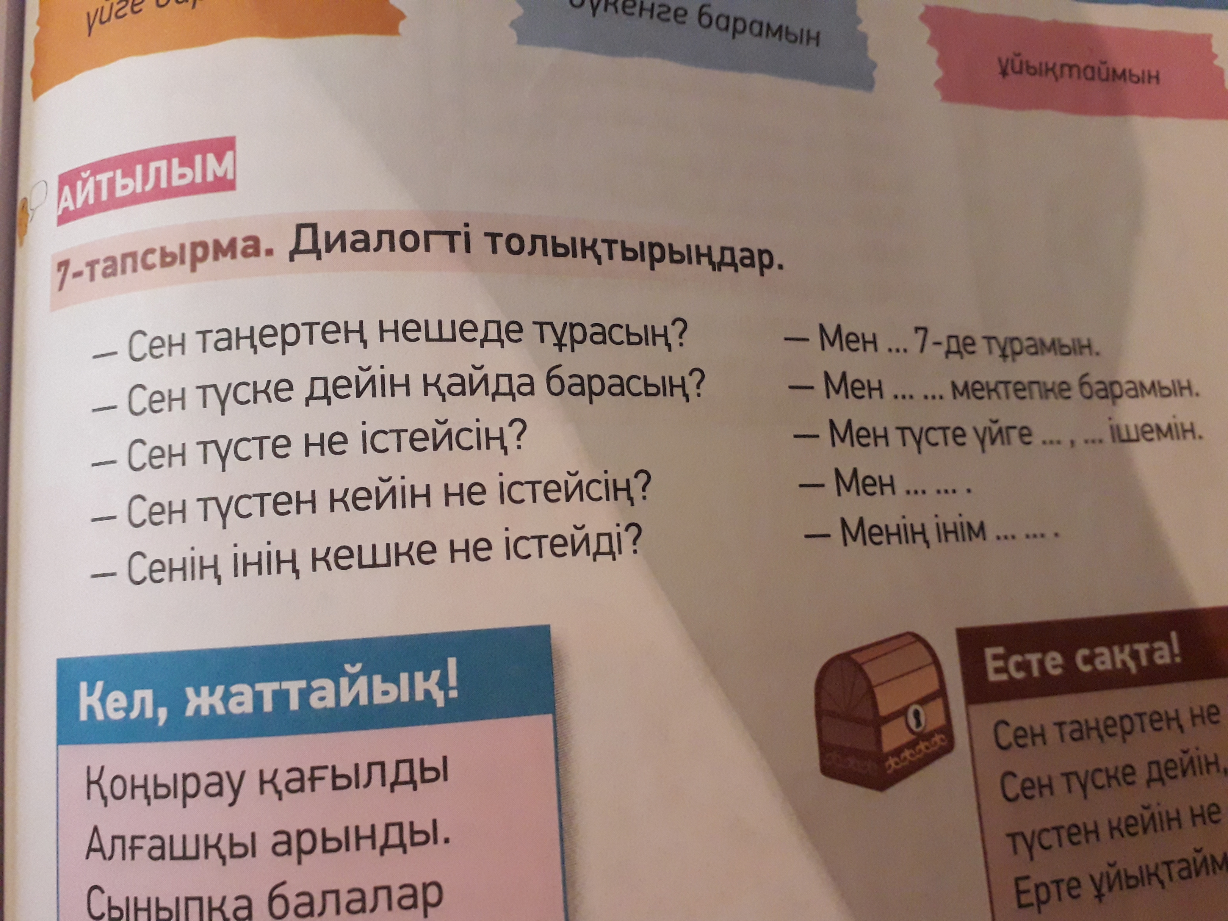 -Мен түсте үйге кайтып, тамақ ішемін.