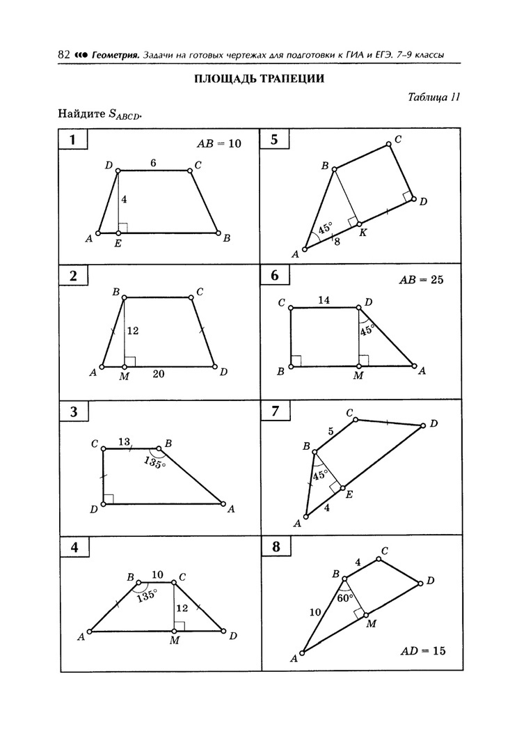 Площадь трапеции равна произведению полусуммы ее оснований на высоту.