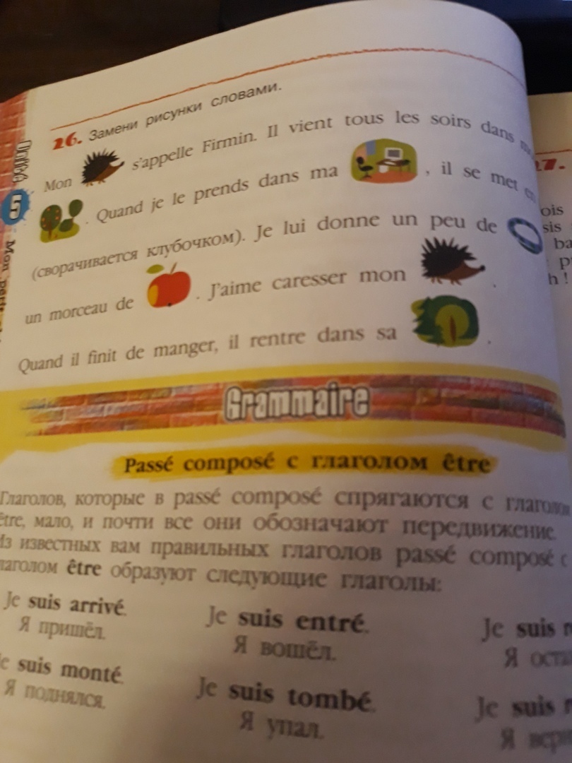 Яблоко-une pomme, дерево-une arbre.мама- mere,папа-pere.iL dit- он говорит.