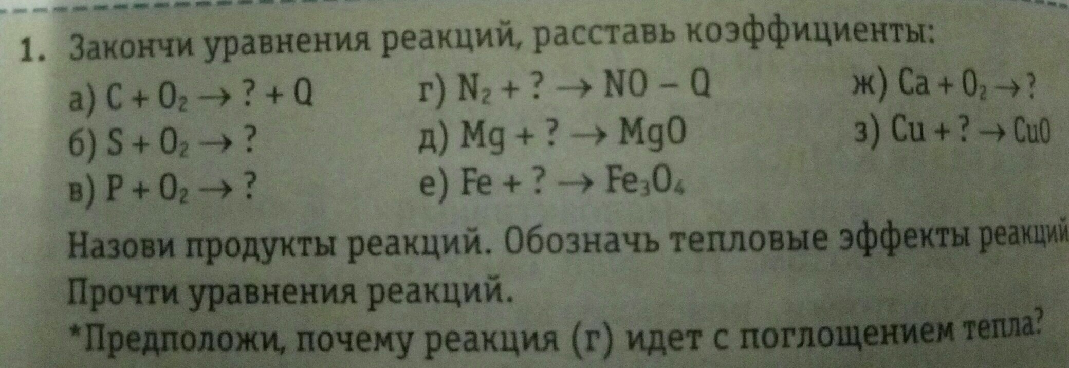 з) 2Cu + O₂ = 2CuO + Q